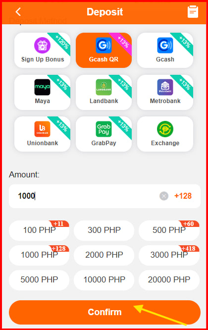 Kapag nailagay mo na ang tamang amount, i-click ang Confirm para magpatuloy sa deposit process.